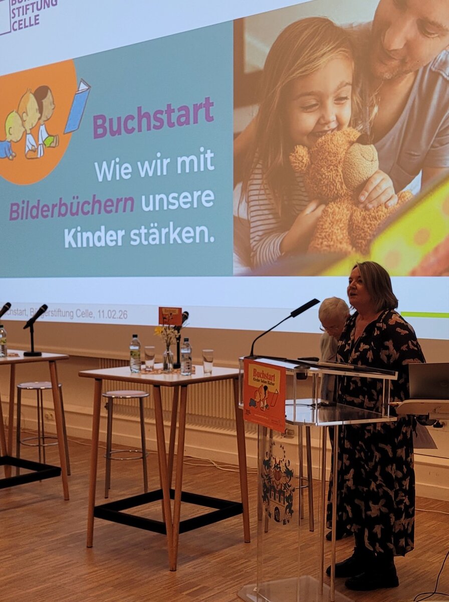 Gemeinsam angekündigt hatten Bürgerstiftung und Bibliotheksgesellschaft Celle einen Fachvortrag mit dem sperrig anmutenden Titel „Bilderbuchlesen mit ein- und mehrsprachigen Kindern - Bedeutung, Wirkung, Handhabung“, um auf das seit vielen Jahren mit Unterstützung der Kinderarztpraxen und Büchereien in Stadt und Landkreis Celle durchgeführte Projekt Buchstart aufmerksam zu machen.
