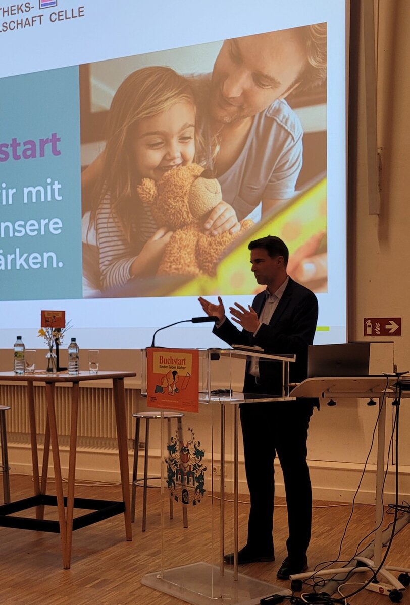 Oberbürgermeister Dr. Jörg Nigge ging in seinem Grußwort darauf ein, dass in der Stadt Celle gerade die Infrastruktur rund um Spielplätze, Kindergärten, Grundschulen und die Stadtbibliothek ertüchtigt wird.